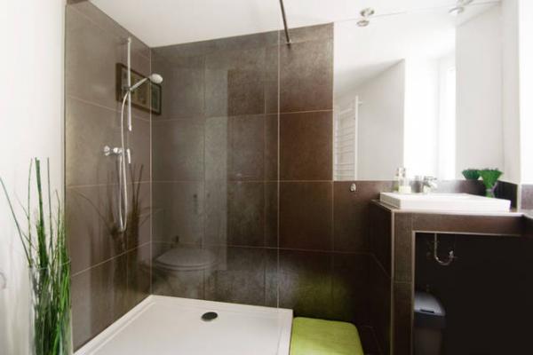 A felfrissüléshez, pedig ennek a színvilágnak megfeleltethető fürdőszoba kidolgozása teremt lehetőséget. A térnövelő fehér és a zöldnövények a konyhából, míg a csempék inkább a nappali színvilágából hoznak ide magukkal elemeket. Így a két eltérő stílus és hangulat a lakás egy adott pontján egybeolvad.